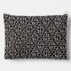 This cosmetic and toiletry bag has a classy design of a damask pattern in black and white with fancy white scrolls.