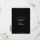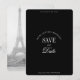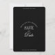 This classy, elegant save the date card in black and white features a minimalist design with "save the date" styled with a mixture of classic text and elegant calligraphy script that lends a sophisticated, classy vibe. The design also features a place to add your photo that covers the entire back of the card.
