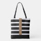 Classy Black and White Stripe Monogram Tote Bag