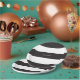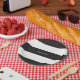 A simple black and white striped patterned birthday paper plate adds a touch of class from the ordinary paper plate.