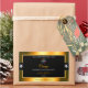 The design features a noble shimmering orange frame with fine decor lines, on a plain black background.