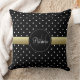 Classy Black & White Dotted, Gold Ribbon Monogram Cushion