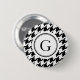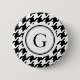 Classy black white houndstooth pattern monogram 6 cm round badge