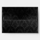 This envelope features faded, script writing of a love poem on the black inside lining. The outside is a luxurious, textured black damask design. The design is lightly distressed for a charmingly vintage look throughout. The return address in the top left corner is customisable, and a frame with a white background has been placed on the outside of the envelope to allow for handwriting of the address