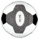 This soccer ball has a classy abstract pattern of black and white damask with fancy white scrolls. Customise your text in the white oval with the template.