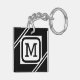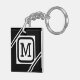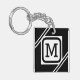 Classy Black & White Simple Square Lined Monogram Key Ring