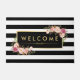 Classy Black White Stripes Beautiful Floral Decor - Elegant Girly Welcome Doormat Template.