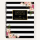 Classy Black White Stripes Floral Personal Notes Notebook.
