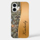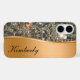 Glitzy smartphone case design for iPhone 16 designed in simulated sparkling jewel bling digitally printed on the cover and a gold tone monogram emblem you can personalise with your name drop or monogram initials to make this your own. Carry your cellphone in a style as unique as you are.