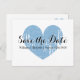 Classy blue and white heart Save the date postcard