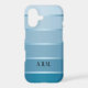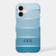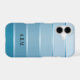 Stylish phone case featuring a blue tonne sur tonne with silver striped design with your own text or monogram.