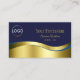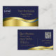Classy Blue Wavy Gold Decor with Logo QR Code Business Card