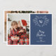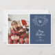 Spread Christmas cheer with this elegant and modern Christmas greeting card featuring a white line art mistletoe design framing a classic crest easily customisable with your initials over a classic blue background. Add one of your favourite family portraits to the left side of this holiday card and a second one on the reverse side.