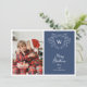 Classy blue & white classy crest 2 photos holiday card