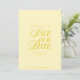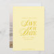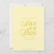 This classy elegant save the date card in butter yellow features a minimalist design with "save our date" styled in a mixture of classic text and elegant calligraphy script that lends a sophisticated, classy style with old money vibes. The design also features a place to add your photo that covers the entire back of the card.