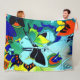 Excellent butterfly collage printed fleece blanket. Durable, soft and available in large, medium and baby size for that toddler. Add that extra warmth on those cooler nights, watching TV or out on a picnic. Nothing compares to the softness of warm fleece.