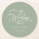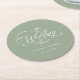 Classy Calligraphy Wedding Sage Green Round Paper Coaster