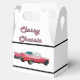 Gable-style favour box with an image, on the front and back, of a classic pink Cadillac and the words “Classy Chassis” (50s slang) in 50s-style pink and black polka dot letters. Black borders. See the entire Nifty 50s Favour Box collection in the PARTY FAVORS section.