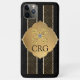 This classy case is perfect for a professional look when you're on the go. This design features a gold and black dotted and striped pattern with a gold and faux diamond crest. Personalise with a three letter monogram just below the golden decoration.