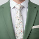 Unique necktie featuring a charming contemporary French shabby chic pattern. It showcases a botanical floral design with beautifully arranged pastel peach pink flowers, and light sage and eucalyptus green leaves, set against a white background. Unique, pretty, decorative, fashionable, and trendy design for the professional and sophisticated businessman, groom, wedding best man, groomsman, or graduate.