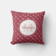 A classy monogram square throw pillow with a chilli pepper red circles pattern with girly hearts in them. Personalise by adding your name and monogrammed initial to the modern circle frame. Part of the Chilli Pepper Hearts Bedroom Decor Summer Colour Collection.