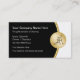 Classy housekeeper business card template in a simulated gold medallion cleaning service or maid symbol with great text layout you can personalise online. Best business cards designed for themes related to maid, house or office cleaning, residential or commercial.