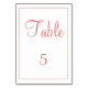 A coral table card that is classy, this item portrays a coral and white design using easy to fill in templates. The text can be customised as well as the colour of the table card and square. Personalise your table card today!