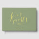 This guest book provides an ideal space for your friends and family to leave their signatures and warm messages. Made with high-quality materials, it showcases the words 'Guest Book' in elegant gold foil calligraphy script, against a stylish medium to dark sage green backdrop. Personalise it with your wedding date on the front and your initials on the spine to make it distinctively yours. This cherished keepsake will serve as a beautiful reminder of your special day for years to come.