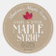 Your Business Name is written in an elegant script font on a kraft background. Red Sugar Maple Leaf. MAPLE SYRUP is printed in a decorative font with a drop shadow. Stitched border.
