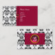 CLASSY DAMASK MONOGRAM ,red ruby pink Business Card