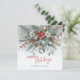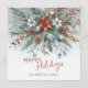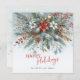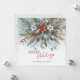 This holiday greeting card is distinguished by its elegant and unique design. It features a classic "Happy Holidays" greeting, which you can customize to your preference, set against a beautiful dark teal blue, white, and maroon red wreath bouquet pattern. The front of the card includes space for your family name and a seasonal message, while the inside provides an ideal area for adding a custom message or poem. It's a stylish way to send your holiday wishes.