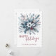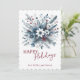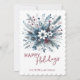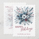 This holiday greeting card is distinguished by its elegant and unique design. It features a classic "Happy Holidays" greeting, which you can customise to your preference, set against a beautiful dark teal blue, white, and maroon red wreath bouquet pattern. The front of the card includes space for your family name and a seasonal message, while the back provides an ideal area for adding a custom message or poem. It's a stylish way to send your holiday wishes.
