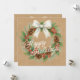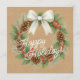 This beautifully designed holiday card showcases elegant watercolor artwork of a wreath embellished with a white bow, pinecones, green holly leaves, red berries, and pine needles. Its classy yet rustic design captures the essence of the December holiday season and appeals to those who appreciate artistic illustrations. The card offers customisation options, allowing you to personalise it with your company name, family name, or individual names. Additionally, you can include a tailored seasonal greeting poem on the front, making it a thoughtful choice for spreading holiday cheer.