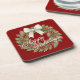 This beautifully designed holiday beverage coaster showcases elegant watercolor artwork of a wreath embellished with a white bow, pinecones, green holly leaves, red berries, and pine needles. Its classy yet rustic design captures the essence of the December holiday season and appeals to those who appreciate artistic illustrations. The coaster offers customisation options, allowing you to personalise it with your seasonal greeting, making it a thoughtful choice for spreading holiday cheer.
