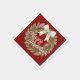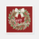 This beautifully designed holiday paper napkins showcases elegant watercolor artwork of a wreath embellished with a white bow, pinecones, green holly leaves, red berries, and pine needles. Its classy yet rustic design captures the essence of the December holiday season and appeals to those who appreciate artistic illustrations. The napkin offers customisation options, allowing you to personalise it with your seasonal greeting, making it a thoughtful choice for spreading holiday cheer.