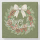 Classy December Wreath With White Bow Holiday Stone Coaster