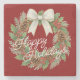 Classy December Wreath With White Bow Holiday Stone Coaster