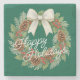 Classy December Wreath With White Bow Holiday Stone Coaster