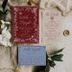 Classy Deep Red Blue Floral Modern Wedding Invitation