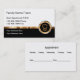 Classy appointment card for Dentist office patients in a combination business card appointment template created in an upscale design with gold tone design elements and tooth emblem. Works for a Dentist, Orthodontist, or medical industry business.