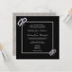 Stylish, elegant modern wedding invitations in silver and black colours. With a shiny classy silver glitter frame encasing your event details, on a black background, with corner decorations off sparkly diamond wedding rings. All text is fully customisable to meet your requirements. If you would like help to customise your product, or would like matching products please contact me through my store and i will be very happy to help you.