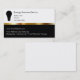 Classy electrician business cards with smart design that includes a light bulb symbol, gold looking design element, text you can customise, and blank second side you can use to add anything you want since two side printing is included.