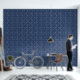 Classy Elegant Foliage & Swirls Silver & Navy Blue Wallpaper