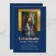 Classy Elegant Gold Text Graduate 1 Photo Blue Announcement