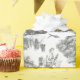 Black white toile pattern with young men and women working and relaxing in woodland for country rustic decor.