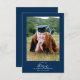 Classy Elegant Script Navy Blue Graduation Photo Thank You Card
