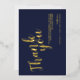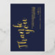 This design features title "Thank You" in real gold foil modern script font with detail in real gold foil modern sans serif font on navy blue background.