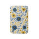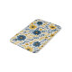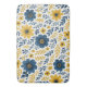 This beautifully arranged classic Mediterranean botanical flower design features a vibrant pattern of yellow and dark blue flowers and leaves on a crisp white background. The design is ornate, stylish, and eclectic, making it appealing to artistic crafters and enthusiasts of vintage retro styles. It is available on a variety of modern decor products such as fleece blankets, lamps, and bedding.
