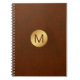 Classy Faux Brown Leather & Gold Initial Name Notebook