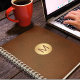 This classy notebook features a sleek faux brown leather cover with a gold initial nameplate, adding a personalised and sophisticated touch. Ideal for journalling, notes, or meetings, it combines elegance with functionality.